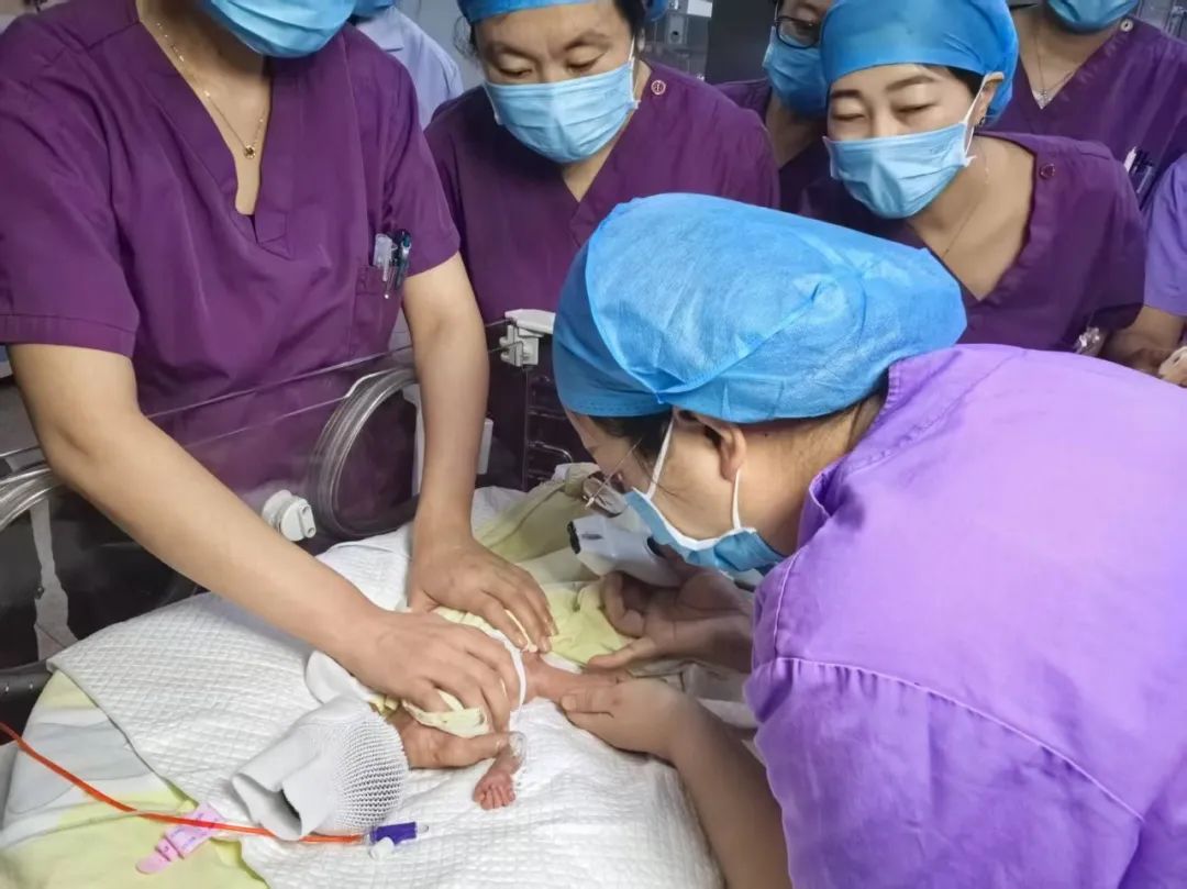 如此低体重的早产儿,建立安全有效的生命通道至关重要。护士用她们娴熟的置管技术建立静脉通路,输送至关重要的营养和药物,闯过最初几天的营养与循环难关。